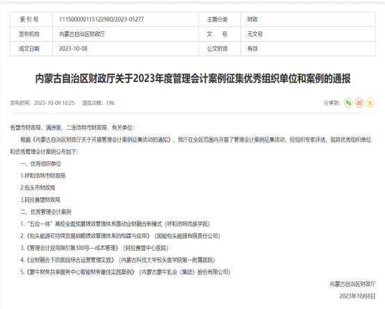 由内蒙古自治区财务厅开展的治剖析计案例征集运动的效果日前揭晓,,,,,,,我校财务处副处长徐多申报的案例《“五位一体”高校周全预算绩效治理系统推动业财融合新模式》,,,,,,,入选优异治剖析计案例,,,,,,,并位列第一。。。。。。。