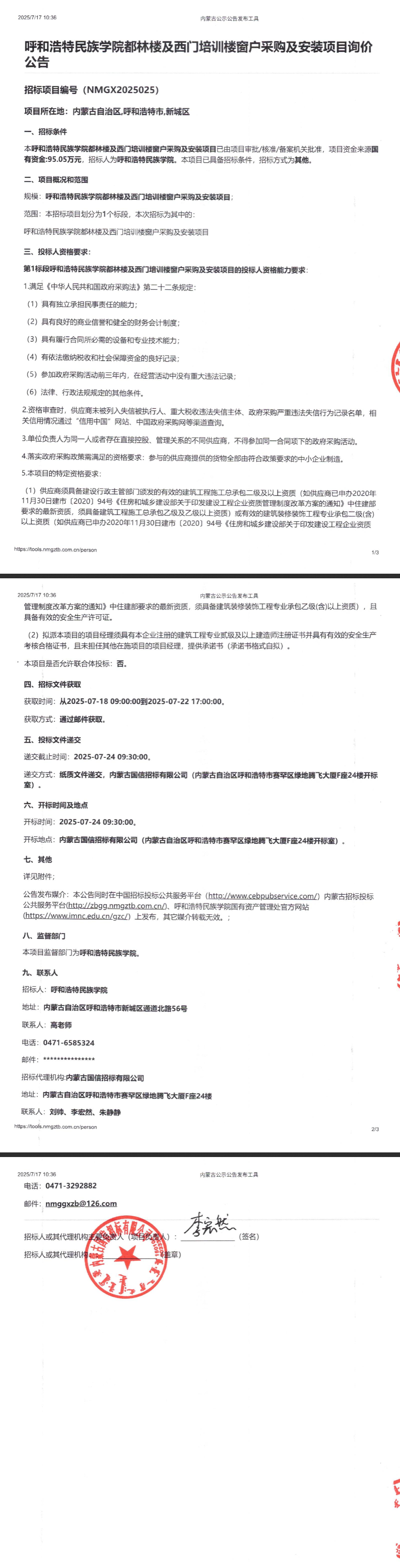胜天国际官网都林楼及西门培训楼窗户采购及装置项目招标通告
