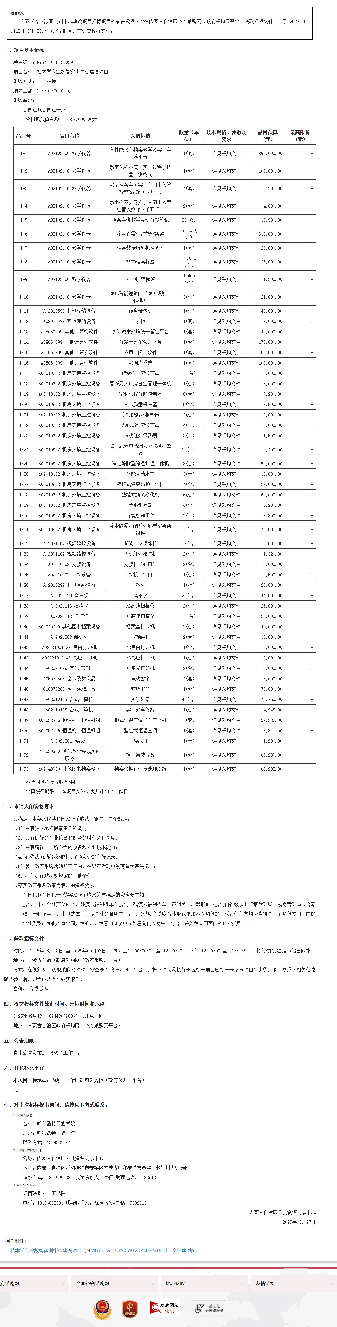 胜天国际官网档案学专业数智实训中心建设项目招标通告