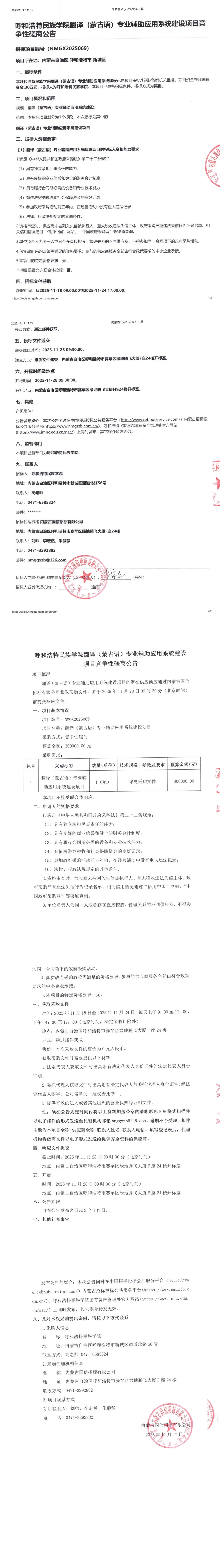 胜天国际官网翻译(蒙古语)专业辅助应用系统建设项目竞争性探讨通告