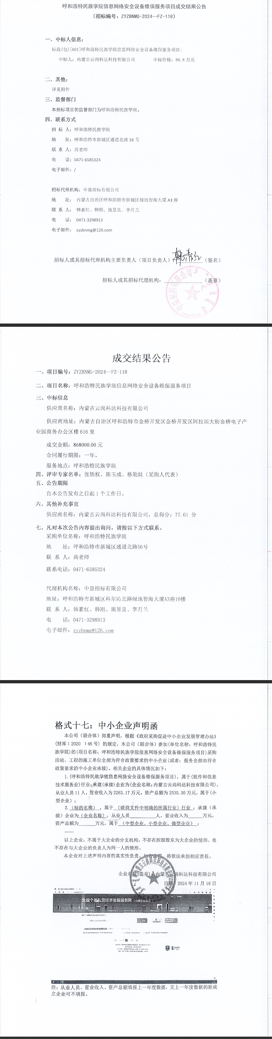 胜天国际官网信息网络清静装备维保效劳项目成交效果通告