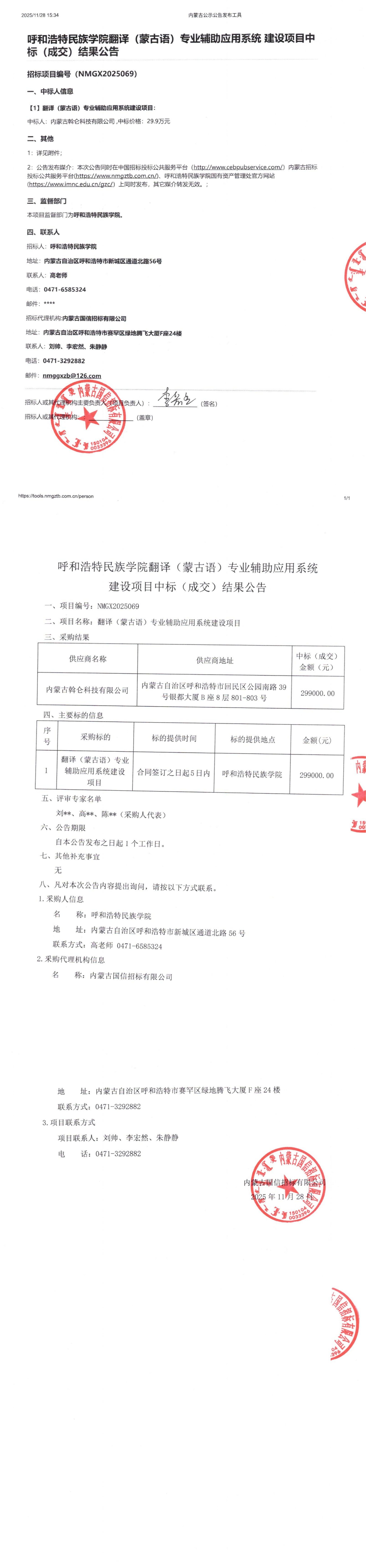 胜天国际官网翻译(蒙古语)专业辅助应用系统建设项目中标(成交)效果通告