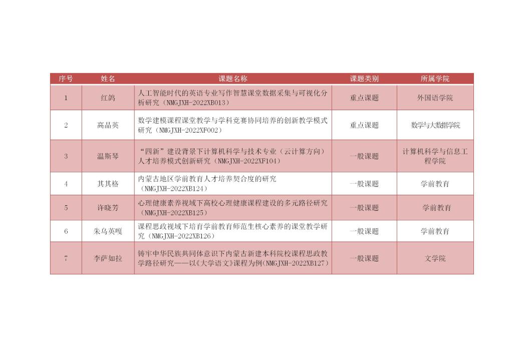 克日,,,,,内蒙古自治区高等教育学会宣布了2022年高等教育研究立项课题名单和优异论文获奖名单。。。。。。我校;;;;;;;衽氐憧翁2项,,,,,一样平常课题5项;;;;;;;;荣获优异论文特等奖2篇,,,,,一等奖1篇,,,,,二等奖2篇。。。。。。