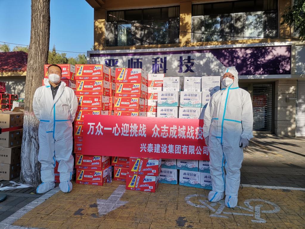 10月11日,,,,,,,,兴泰建设集团有限公司向我校捐赠康师傅利便面10000桶、矿泉水10000瓶、王中王火腿肠10000根,,,,,,,,助力我校打赢疫情防控攻坚战。。。。。。。校企携手,,,,,,,,配合守“呼”,,,,,,,,配合守护漂亮家园! 凝心聚力战疫情,,,,,,,,共克时艰显继续。。。。。。。学校将继续从严从实从细做好各项疫情防控事情,,,,,,,,将爱心之举落到实处,,,,,,,,确保师生员工生命清静和身体康健。。。。。。。