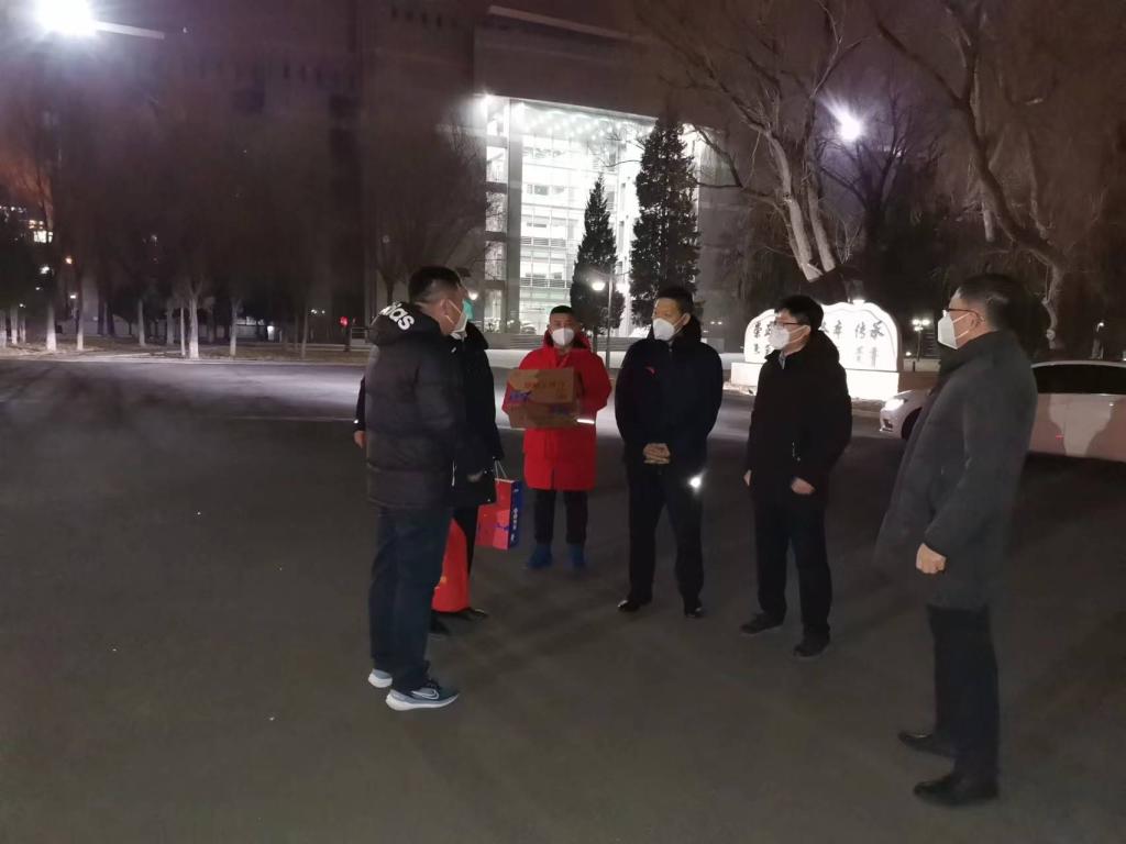 严冬透寒意,,,,,慰问暖人心。。。。。。。1月21日,,,,,在夏历新春佳节除夕之夜,,,,,校向导刘九万、韩伟新、刘瑞鸿一行检查校园清静并走访慰问了奋战在一线的事情职员,,,,,向他们致以节日问候,,,,,送上新春祝福,,,,,送去新年礼包。。。。。。。