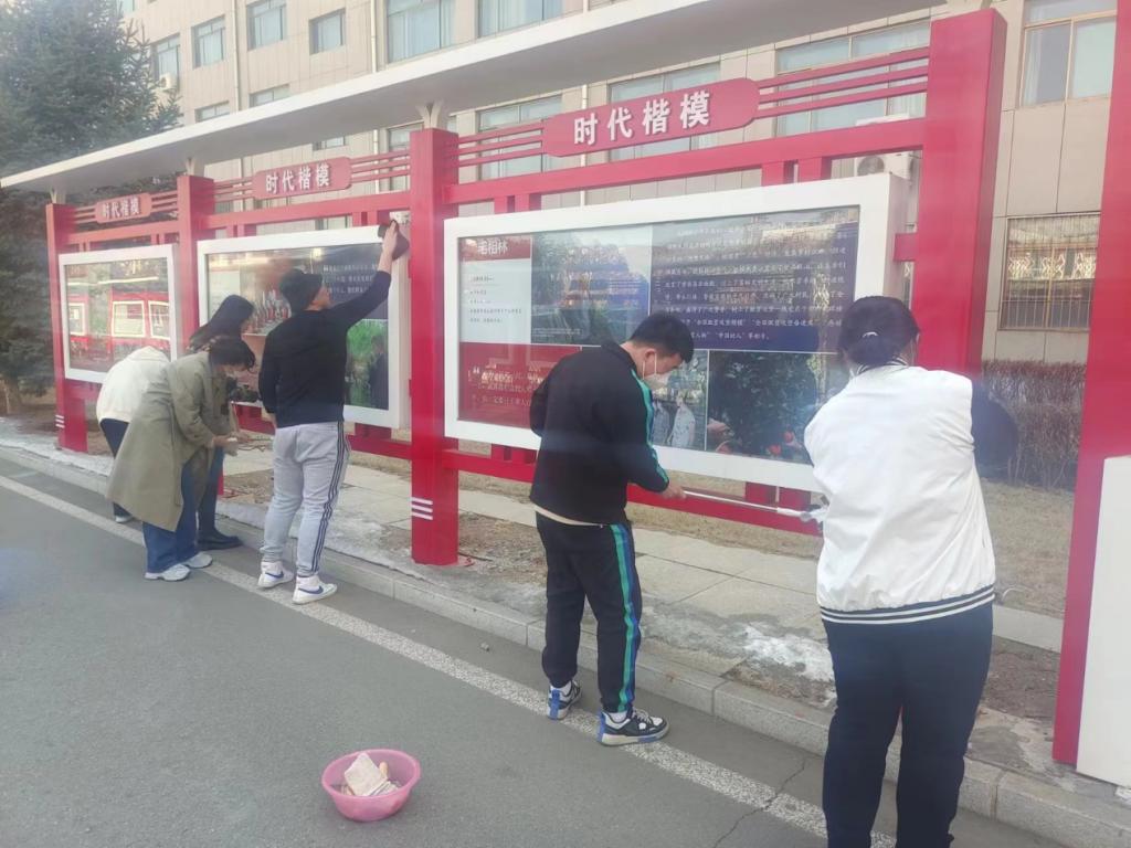 3月3日中午,,,,,,,学生党员陆续抵达荟萃所在——时代楷模文化长廊党员先锋岗处。。。。。。。。至12时30分,,,,,,,全体学生党员准时荟萃完毕。。。。。。。。清点人数之后,,,,,,,学生党员们顺次次站好,,,,,,,认真谛听党委组织部党员教育治理科科长齐丹先生对此次清洁运动和学习宣传时代楷;;;;;;;T硕陌才。。。。。。。。在列位党支部书记的向导下,,,,,,,学生党员们迅速投入到清洁劳动中。。。。。。。。经由快要一个小时的奋战,,,,,,,宣传橱窗被扫除得一尘不染,,,,,,,面目一新。。。。。。。。