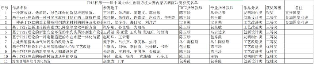3月28-29日,,,,,,,,由自治区科技厅、教育厅、科协主理,,,,,,,,内蒙古立异要领研究会、自治区科协科技教育和立异效劳中心配合承办的“2022年内蒙古立异要领大赛高校赛暨第十一届中国TRIZ杯大学生立异要领大赛内蒙古区赛决赛”在呼和浩特举行。。。。。。包括我校在内的区内26所高校的1400余名师生的284项作品参赛。。。。。。我校11项参赛作品入围决赛。。。。。。经由强烈角逐,,,,,,,,最终我校团队荣获自治区银奖1项、二等奖2项、三等奖4项、优胜奖4项,,,,,,,,获奖数目和条理创历年新高。。。。。。其中,,,,,,,,1项作品直推国赛,,,,,,,,2项作品入围国赛网评。。。。。。我校陈玉珍先生获本届大赛“优异联络员”称呼。。。。。。