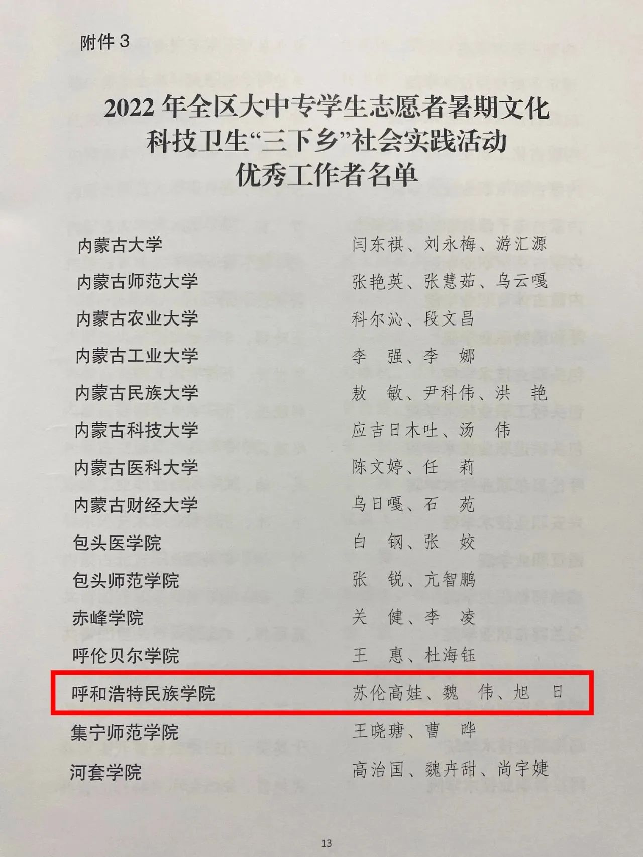 在本次表扬中,,,,,,我校荣获2022年全区大中专学生自愿者暑期文化科技卫生“三下乡”社会实践运动“优异组织奖”;;;;;;胜天国际官网理论普及宣讲团、美术学院重走习近平总书记考察蹊径实践团、新闻传媒学院胜天国际官网团结实践团、音乐学院墟落振兴增进团获评全区“优异自愿者效劳队”;;;;;;苏伦高娃、魏伟、旭日3名西席获评全区“优异事情者”;;;;;;胡宝泉、吴那仁朝格图、瑙莫汗、刘晓、包为为5名西席获评全区“优异指导西席”;;;;;;潘尔丹、白国忠、邢京林等15名同砚获评“优异自愿者效劳队员”。。。。。。