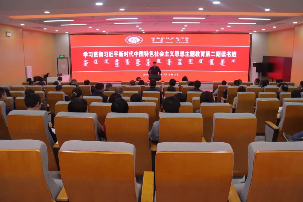 4月18日下昼,,,,,,,,我校在图书馆一楼报告厅开展学习贯彻习近平新时代中国特色社会主义头脑主题教育专题念书班第二次集中学习。。。。。。。。在家校向导、全体副处级以上干部加入了学习。。。。。。。。念书班学习由党委委员、组织部部长吴阿古拉主持。。。。。。。。