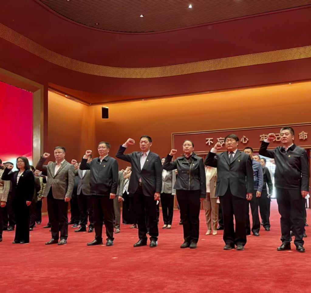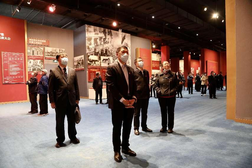 旅行最先前,,,,,全体观展职员步入宣誓大厅,,,,,重温入党誓词。。。。。。各人面向鲜红的中国共产党党旗,,,,,郑重举起右拳宣誓,,,,,用铮铮誓言宣示坚定刻意,,,,,庄重的宣誓声响彻大厅。。。。。。