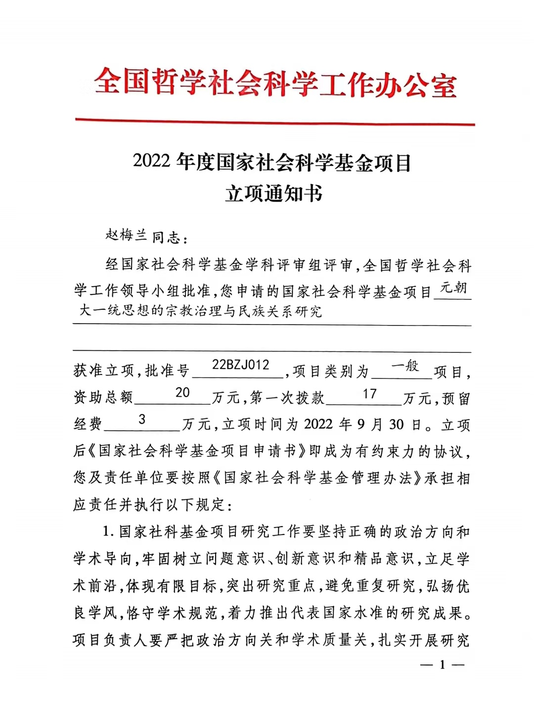 近期国家社科基金2022年度项目评审效果公示,,,,,,,,我院赵梅兰博士申报的“元朝大一统头脑的宗教治理与胜天国际官网关系研究”获准立项为2022年度一样平常项目,,,,,,,,获批资助科研经费20万元。。。。。