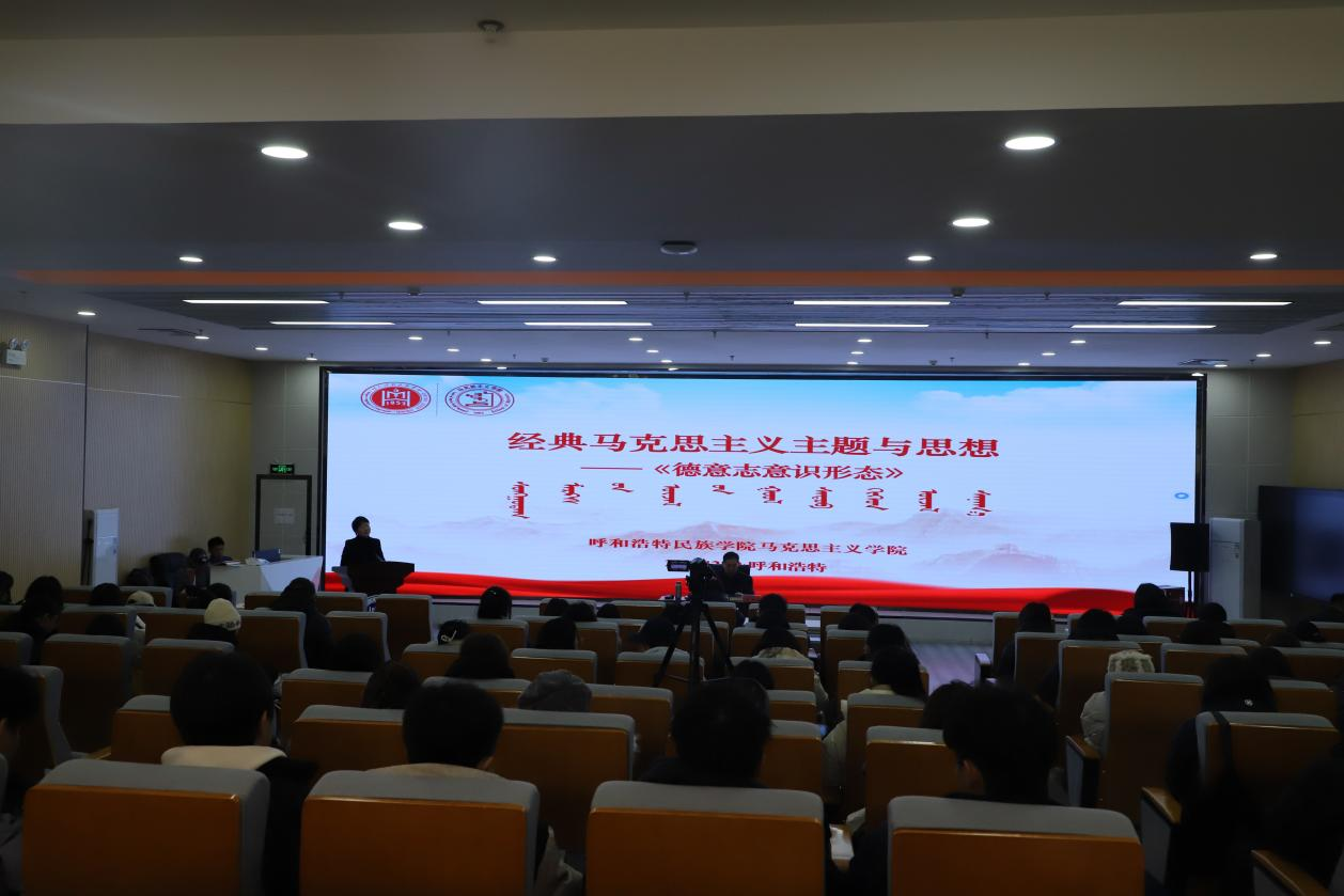 为深化新生马克思主义理论启蒙,,,,,,落实 “读原著、学原文、悟原理” 的育人要求,,,,,,12 月 9 日下昼,,,,,,马克思主义学院特邀胡海波教授在头脑政治理论课实践教育基地开展“经典马克思主义主题与头脑 ——《德意志意识形态》” 专题讲座,,,,,,为100余名2023级本科新生带来了一场兼具理论深度与现实温度的专题讲座。。。。。