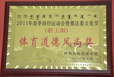 学院2011年春季田径运动会暨那达慕文化节中荣获“体育品德民俗奖”